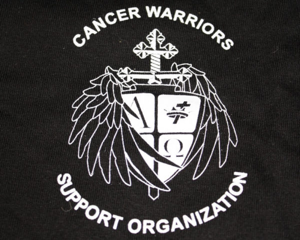 Front- Cancer Warriors logo on front left pocket area.